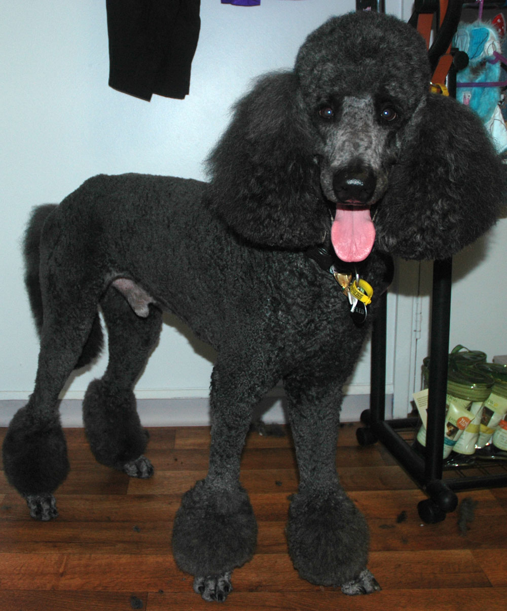 Neo is very pleased with his new look. Stands two inches taller and is ten degrees cooler. A very smart cut indeed for a poodle puppy....